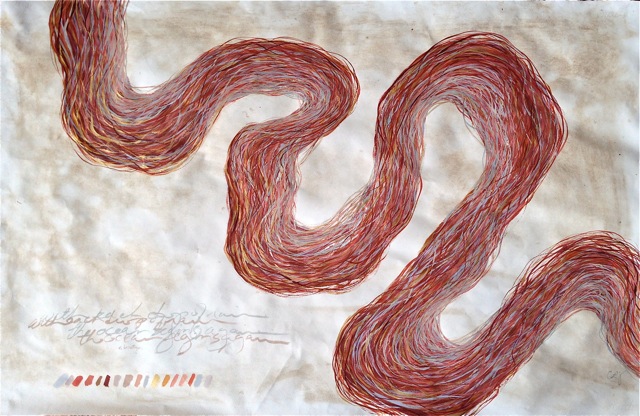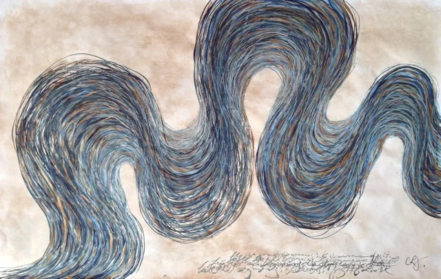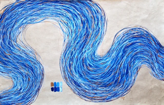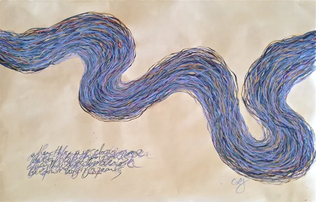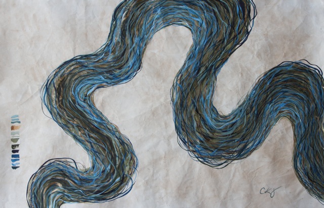 I was compelled to paint those sinuosities to honor and acknowledge the flood-swollen creek. I painted them large, with layers and layers of loose lines meandering across mud-stained paper, preserving the creek's story. I will hold those meanders in my memory and in my heart.